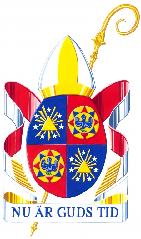 Leif Ericsson har målat Biskop Eva Nordung Byströms vapen och artikel berättar mer om traditionen och tankarna bakom en vapensköld