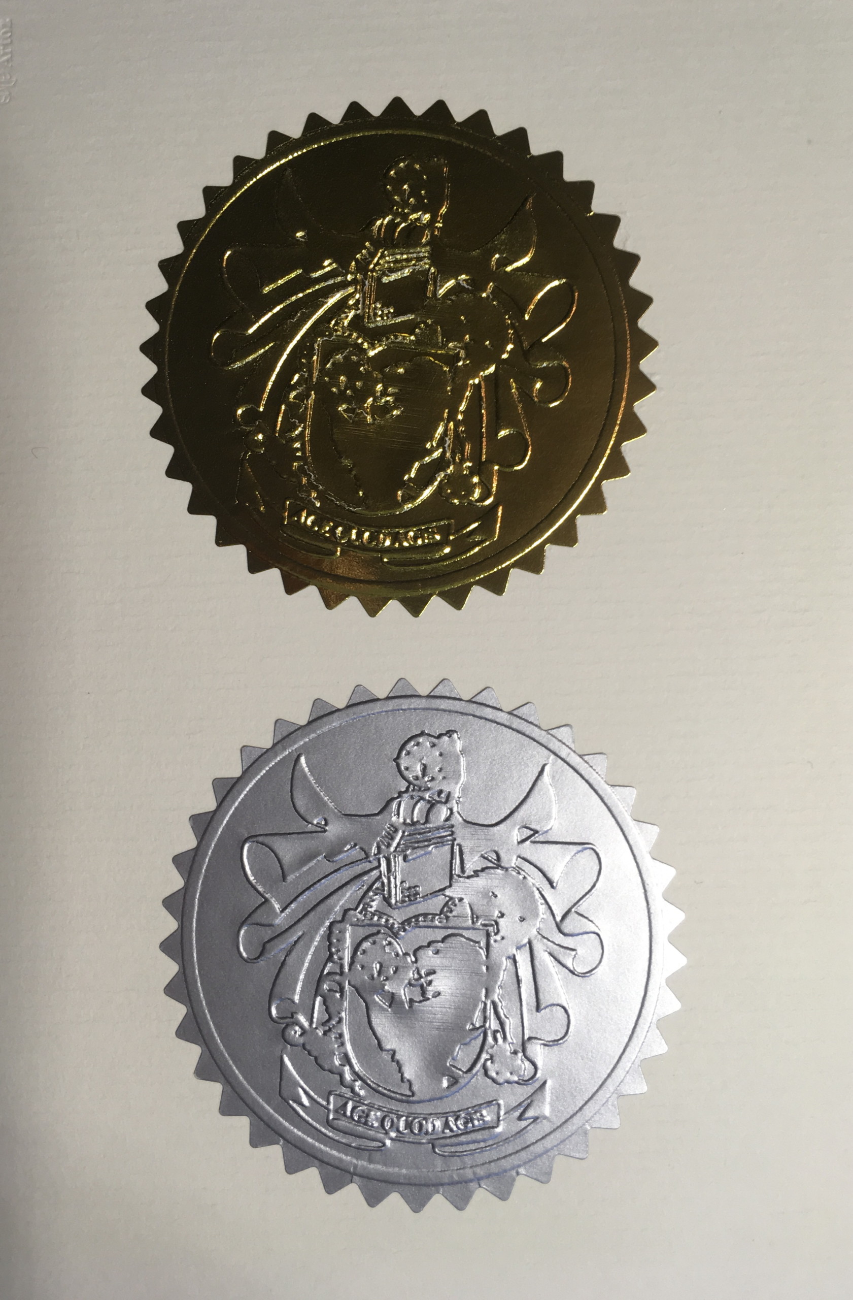 På bilden ser du provtryck på guld och silver etiketter som också är lätta att trycka med vitpressen.