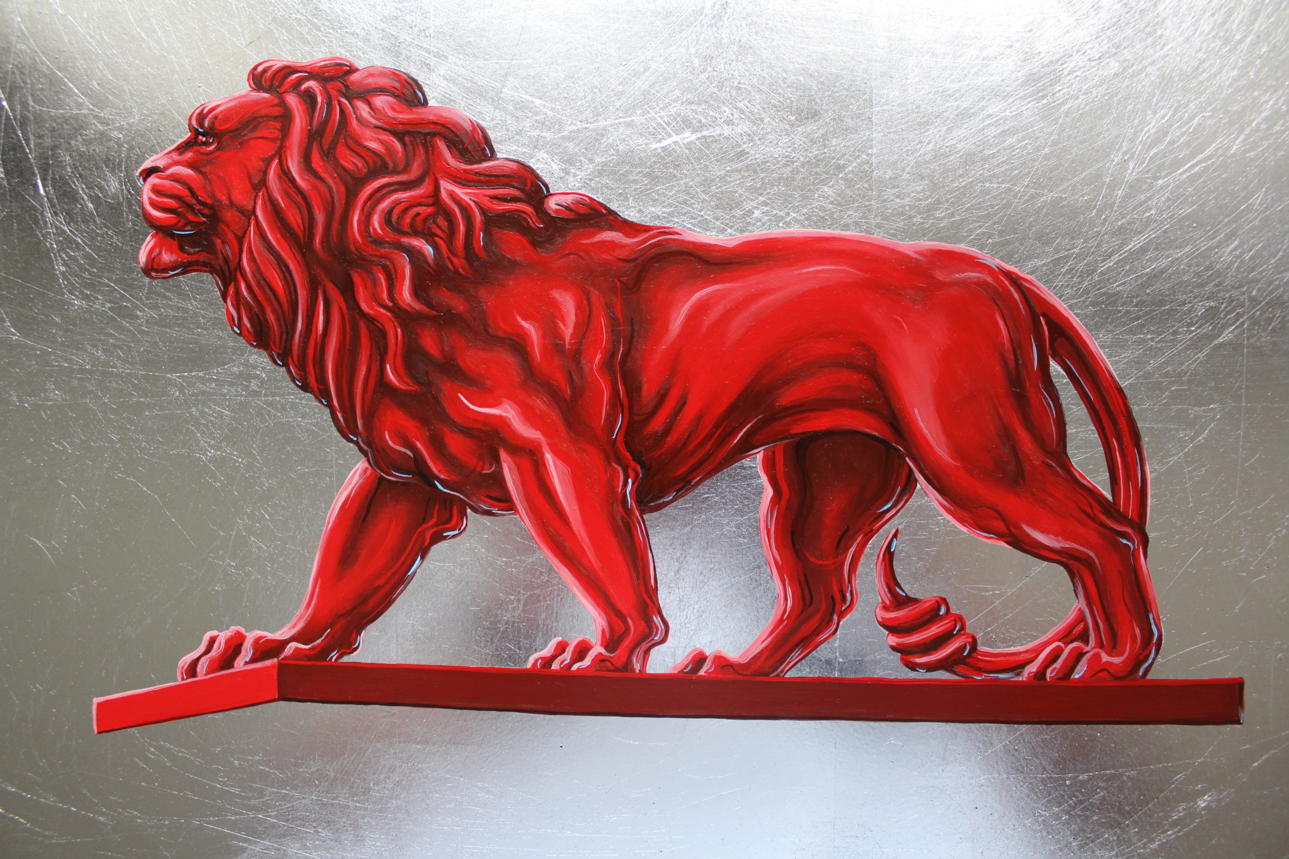 ”Red Lion Postament” är målat på silver grund och motivet är inspirerat från en vacker staty i Budapest.