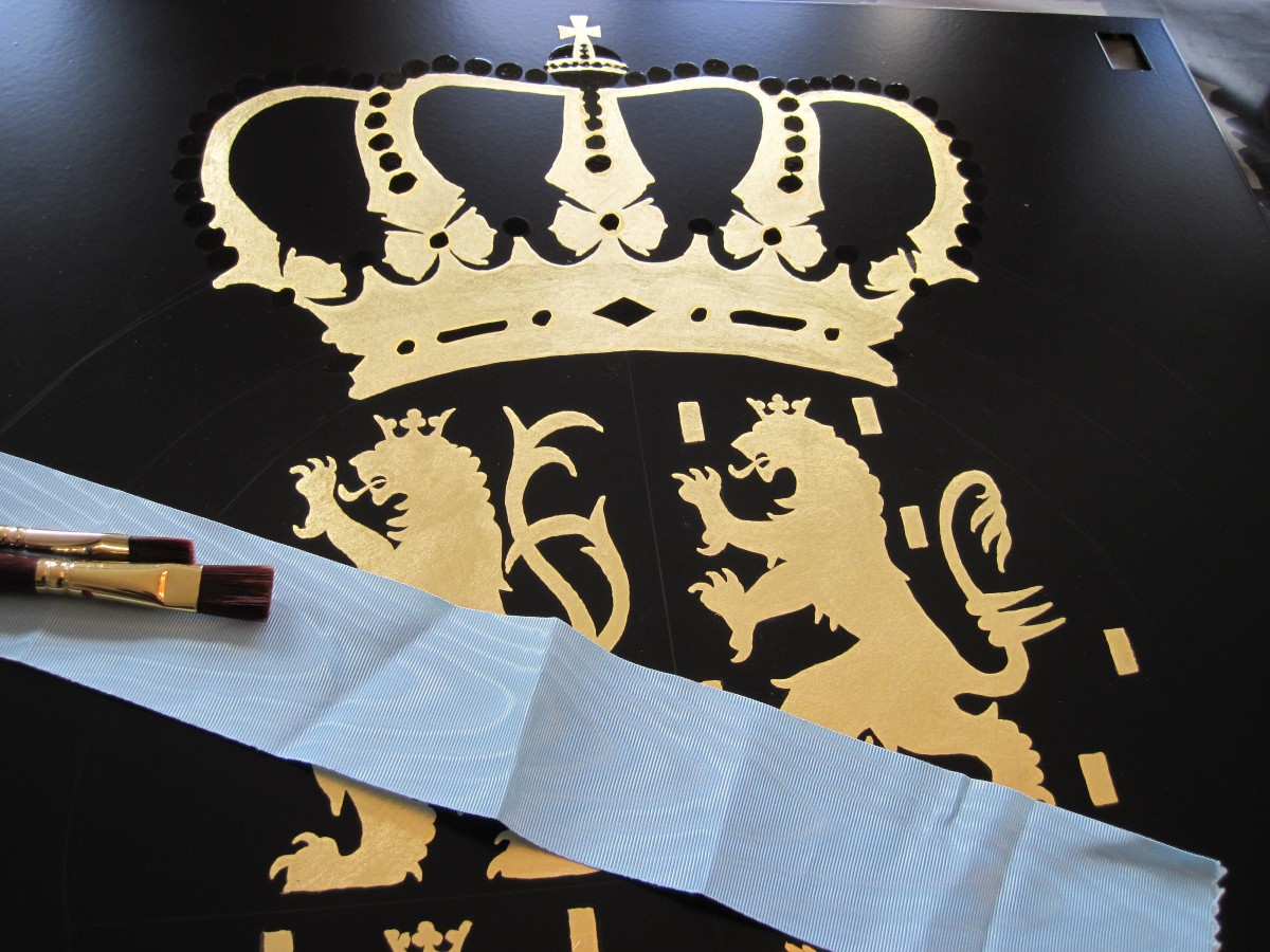 Leif demonstrerade hur ett ordensbandet målas på Serafimersköldarna.