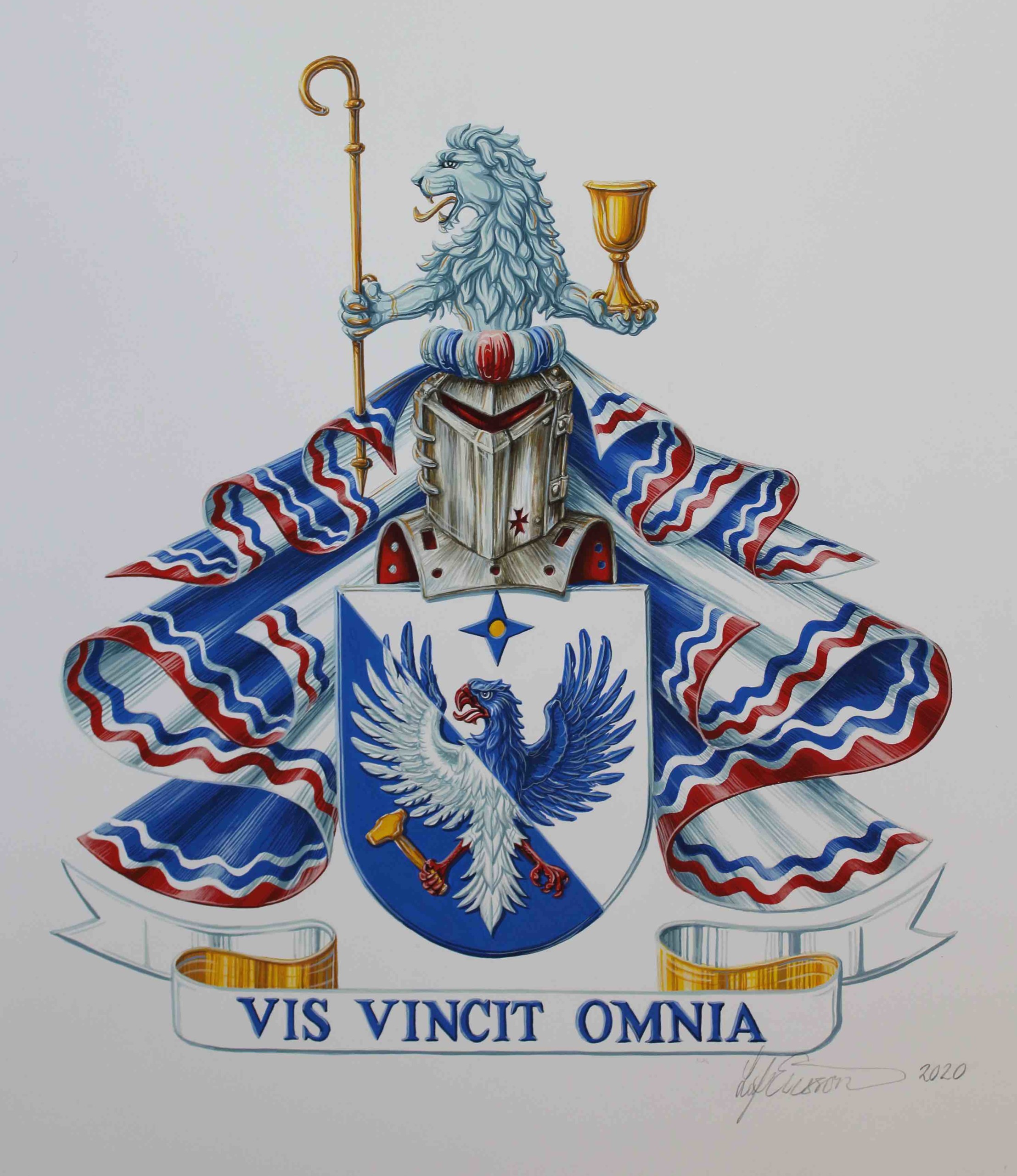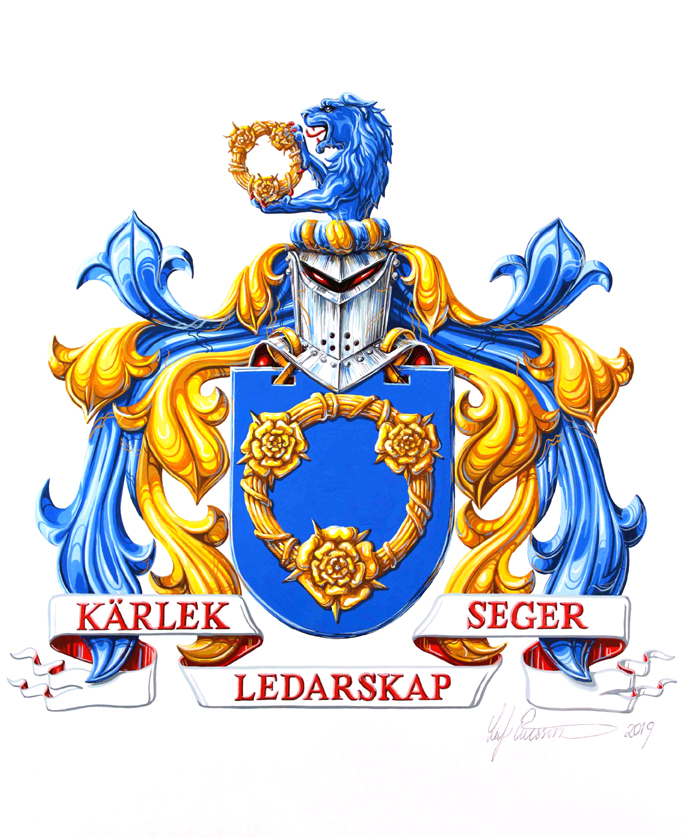 Formgivning och tolkning av din vapensköld i akvarell.